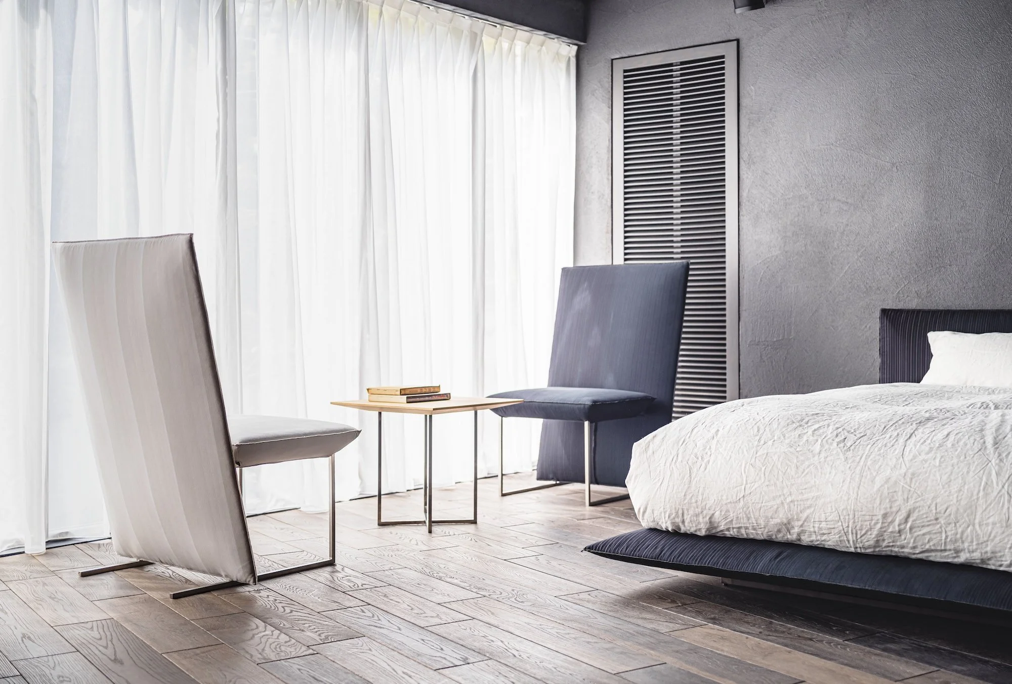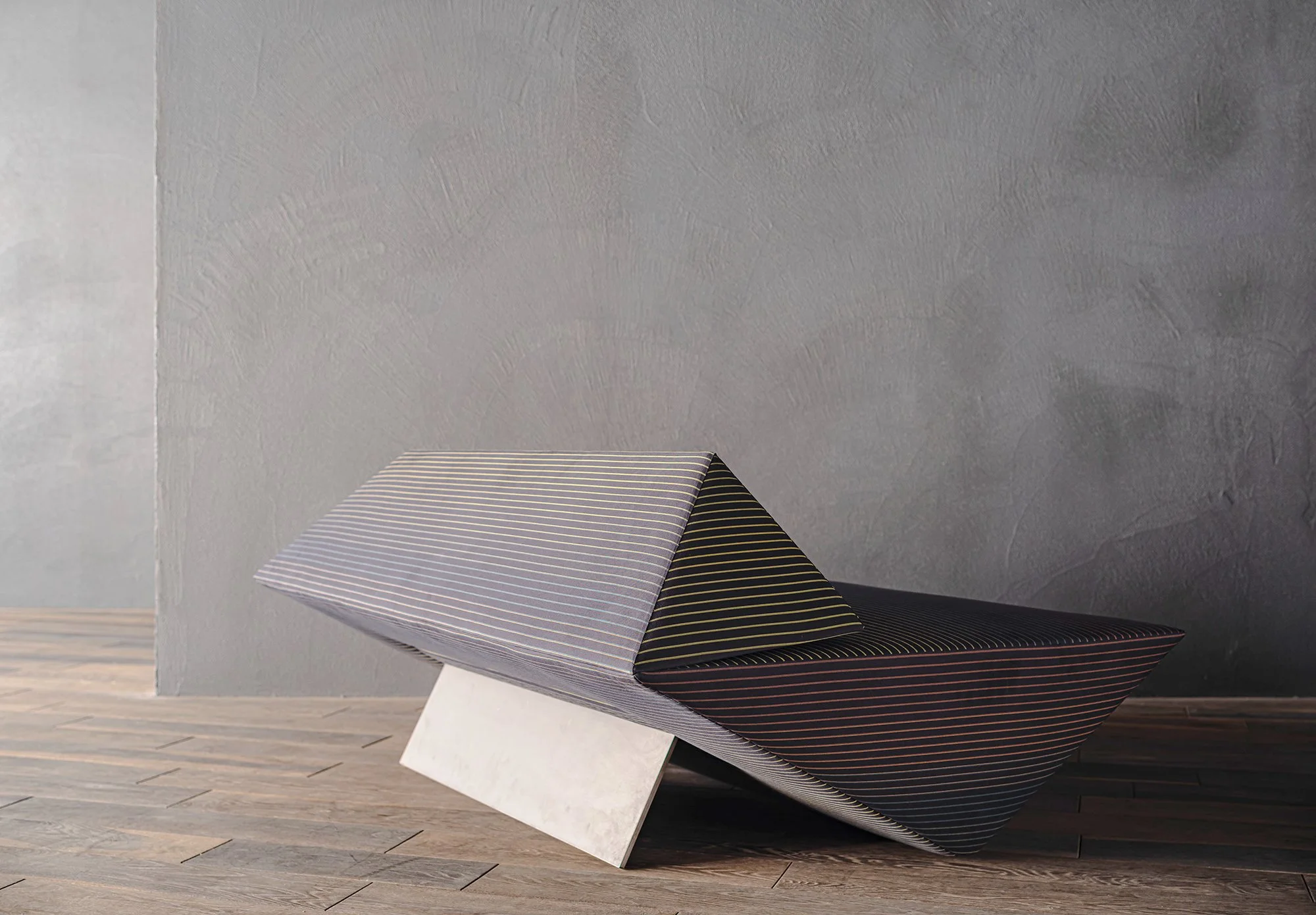 "KUMASHIMA" is the textile by a collaboration between Kengo Kuma, a world-renowned architect, and Noriko Tsuiki, a textile artist who has restored and revived Kokura-ori textiles. It is a new expression of Japanese textiles, created by two professionals fascinated by the abstract nature of stripes with "the power of plants" as the common language.