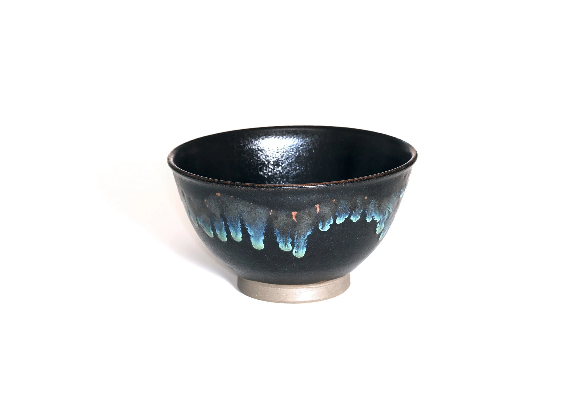 Ryumonji ware specializes in Black Satsuma clay of Kagoshima, a clay made from the dark shirasu soil from volcanic regions. All the ingredients for its clay and glazes are harvested from local mountains and refined in the workshop. Few makers still collect raw materials in such a way. A variety of glazes make the natural beauty of Kagoshima (Kyushu) come to life: from the brightly colored sansai (three-color) and gracefully beautiful “blue trailed black,” to the powerful presence of the dakatsu (serpent) and samehada (shark’s skin) glazes.